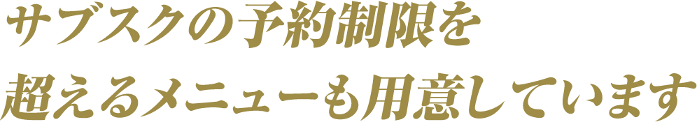 なお、追加で予約チケットをご購入頂くことにより、サブスク予約の枠を超えて先の予約が可能でございますので、ご利用くださいませ。 -